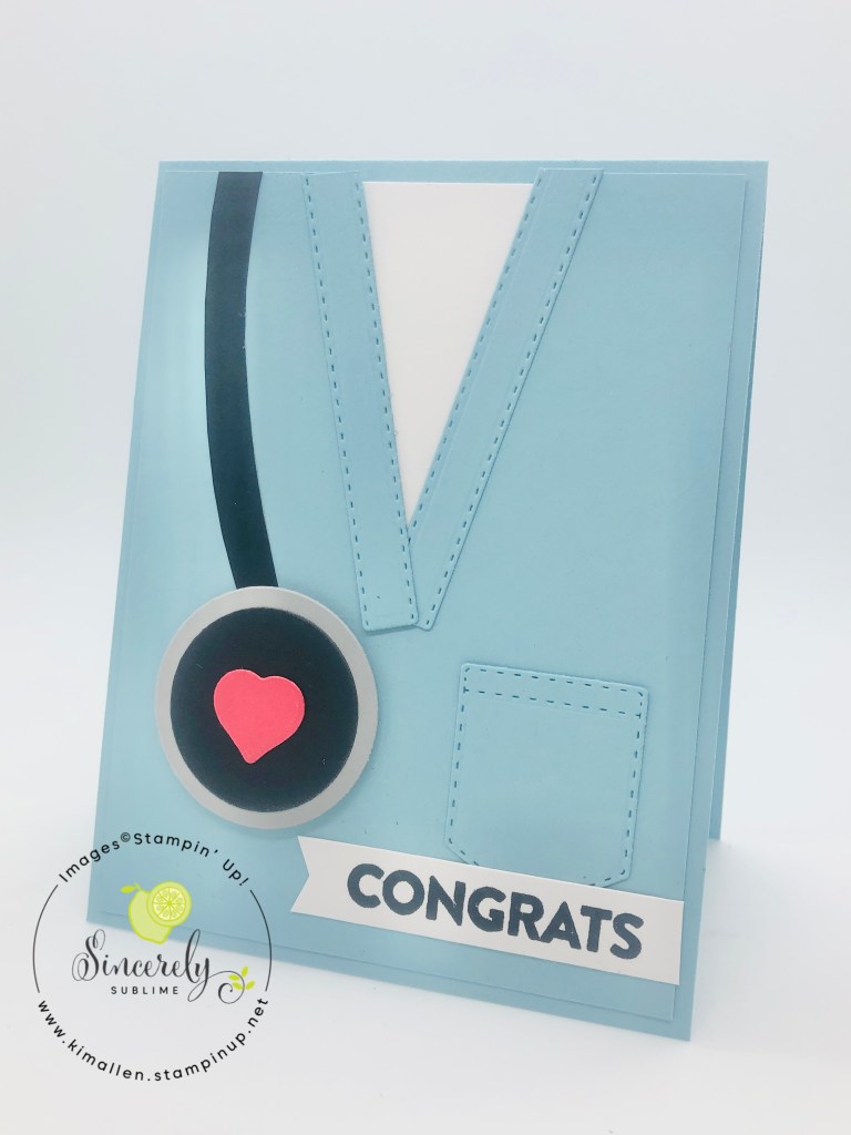 Since my niece just graduated from nursing school and is heading into the NICU at UNC Hospitals, I decided that her graduation gift needed to be nestled inside one of the cute cards that I have seen so many demonstrators make. Using the Suit & Tie Dies, I made her a scrubs card in Carolina Blue. For all the details, you can watch the video. If you want to make this card and need any supplies, I have included links with each supply item listed.